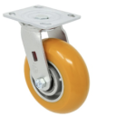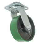 Our most popular medium duty to heavy duty caster right now is our round tread polyurethane on aluminum core swivel and rigid casters. These casters have a large od precision ball bearing in the wheel to allow for easy rolling and easy turning for carts and buggies. This is truly an ergonomic caster with extra benefits.